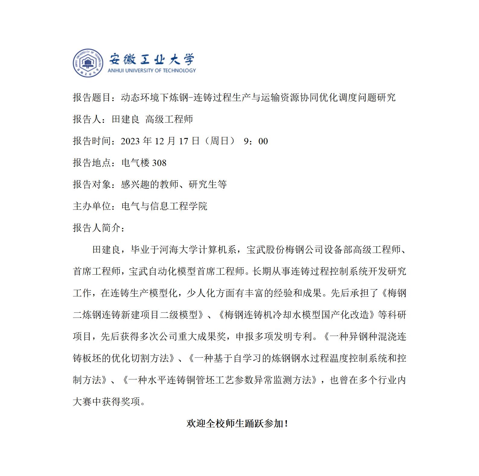 砺山学术报告之二十四-动态环境下炼钢-连铸过程生产与运输资源协同优化调度问题研究