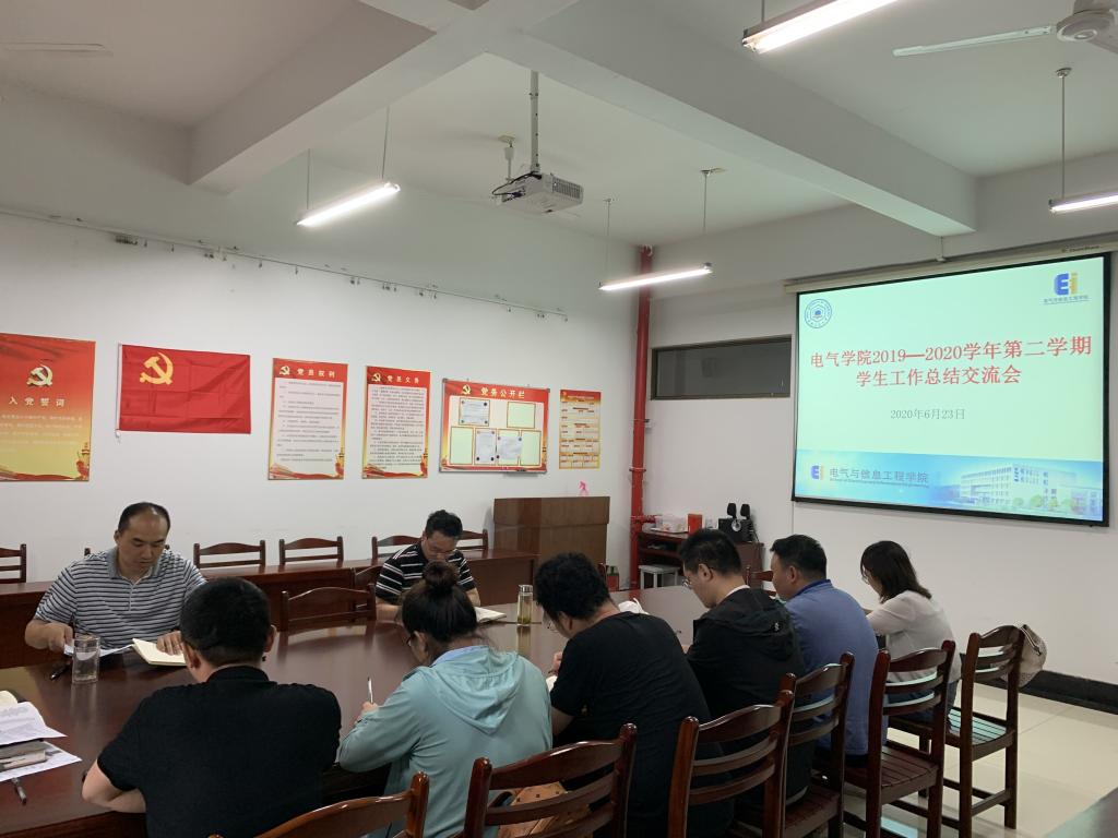 6月23日下午,电气学院学期学生工作总结交流会在电气楼304会议室召开,院党委书记叶凤华,院党委副书记、副院长、纪委书记夏玉钦和各年级辅导员参加会议,会议由夏玉钦主持。