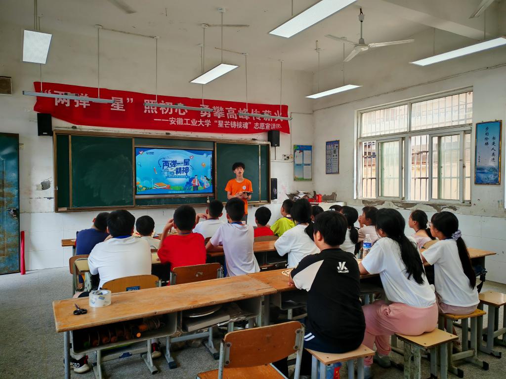 “烛光萤火·电亮童心”暑期社会实践队师生,并举行“安徽工业大学大学生社会实践基地”授牌仪式。和县宣传部副部长艾国、县文明办负责人吴有坤、卜陈学校校长居平树热情接待了安工大一行。PG娱乐城