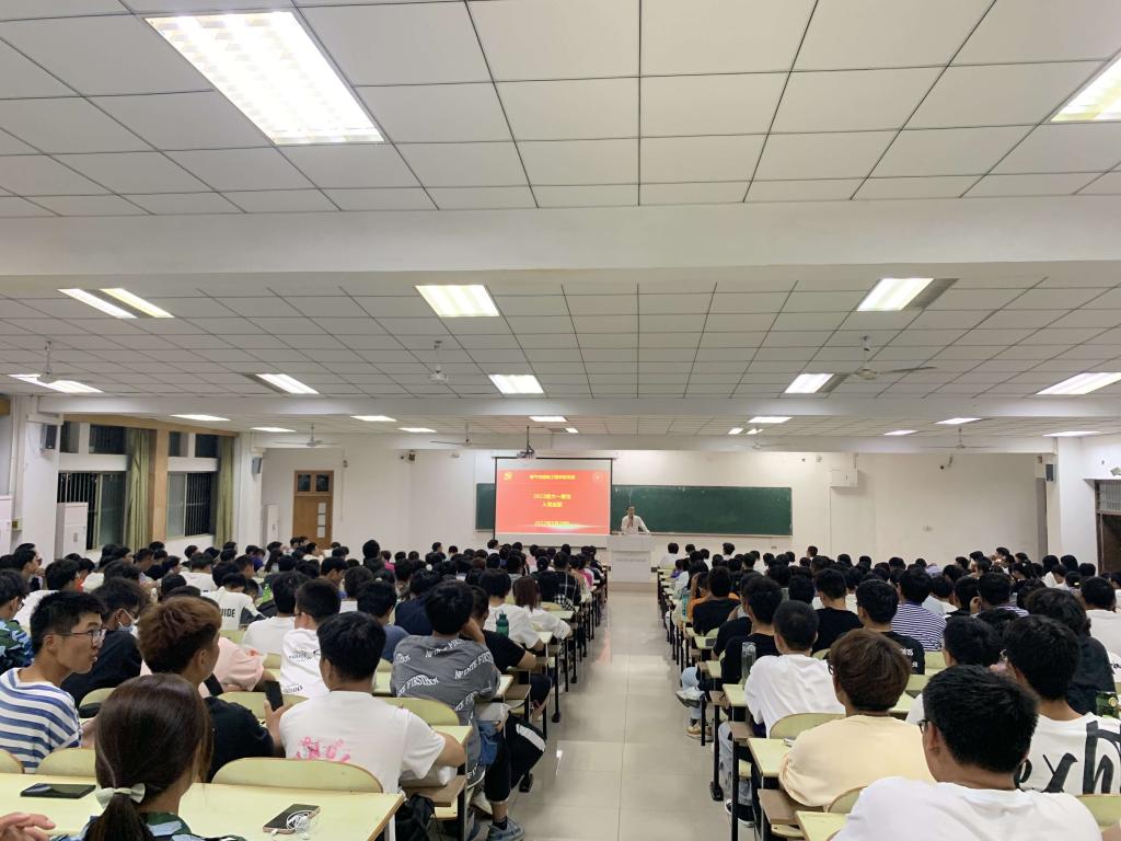 在佳山校区教三南103、404教室举行2022级新生入党启蒙教育,学院党委书记丁忠利主讲,院团委书记李修正、2022级辅导员甘如美江及全体新生参加。
