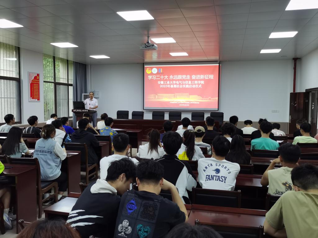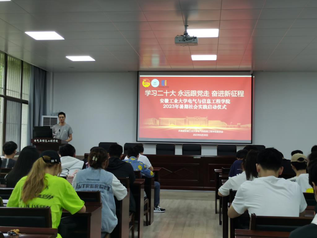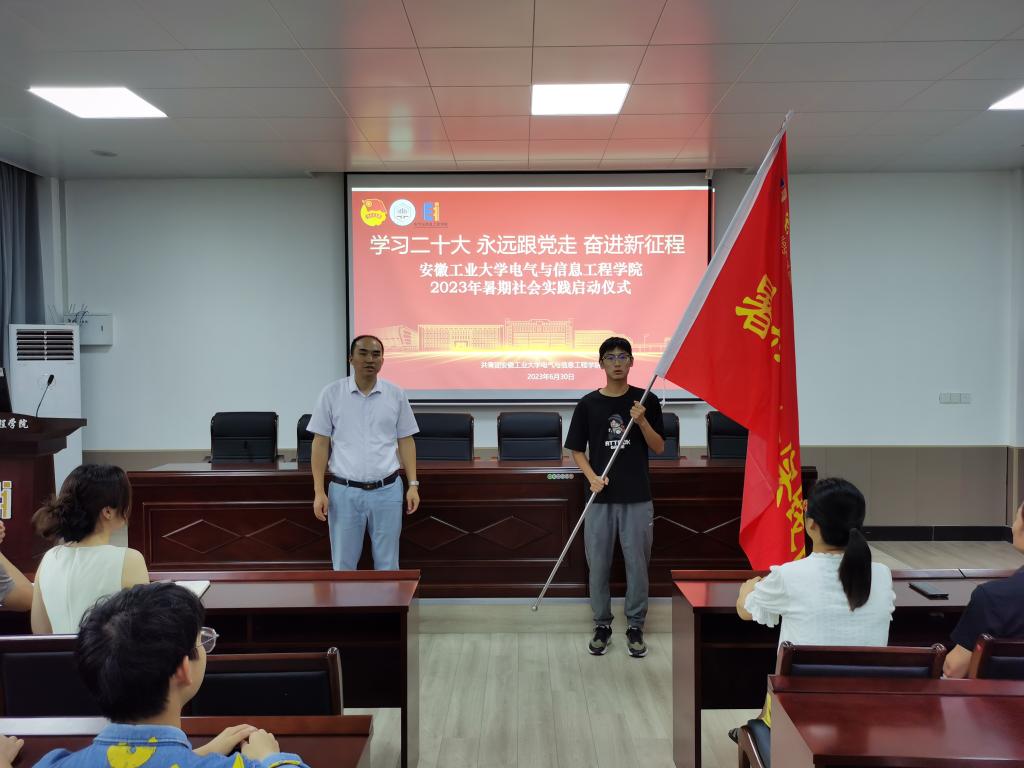 启动仪式上,李修正首先通报了电气学院2023年暑期社会实践组队情况,并就实践安排、目标要求、安全注意事项等方面进行了详细的讲解。夏玉钦为社会实践队代表授旗,并鼓励同学们积极深入基层,在实践中了解国情,在克服困难中锤炼自我,自觉做到严守纪律、服从指挥,增强自我保护意识,确保实践活动安全顺利开展。最后,现场就活动稿件撰写、照片视频拍摄、稿件投稿、安全教育等方面做专题培训。