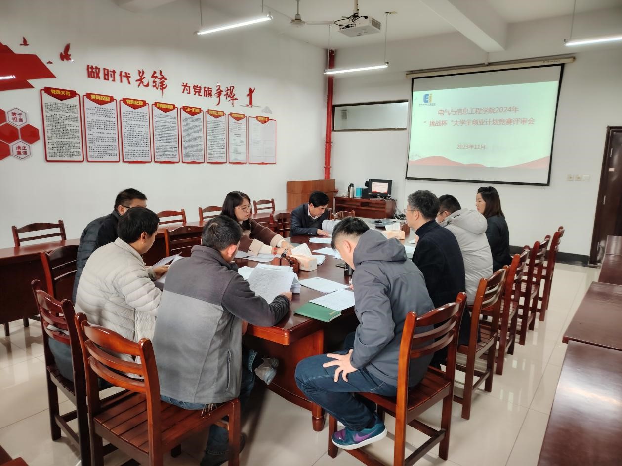 于电气楼304举办2024年“挑战杯”大学生创业计划竞赛评审会。院党委副书记、纪委书记、副院长李克明、副院长李飞、各系室主任、专业课教师代表参加,会议由2022级辅导员甘如美江主持。