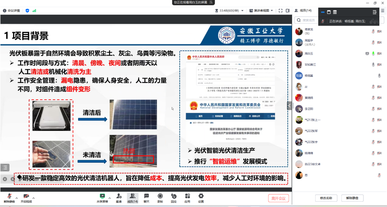 高度重视2024年“挑战杯”竞赛,之后将邀请学院、学校权威专家对参赛作品进行赛前指导,参赛团队师生也在积极备战、不断完善作品。寒假中,院团委将继续组织入围项目线上模拟答辩活动,为参赛学生团队提供赛事政策解读与答辩指导,帮助学生及时检测自身的不足,赢在寒假,为即将到来的校赛做足准备,力争优异成绩。