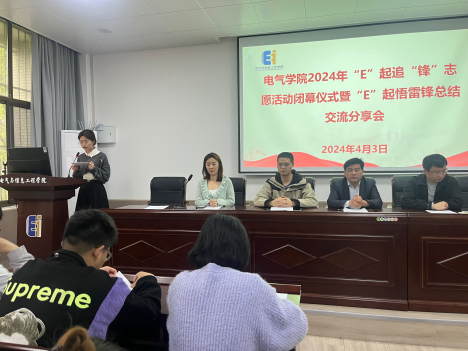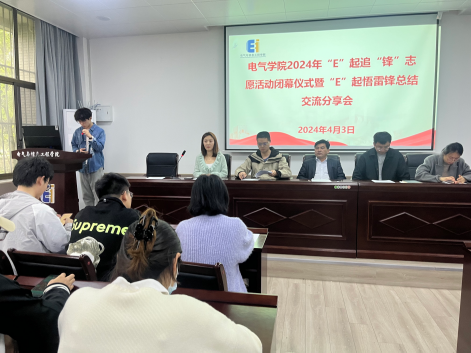 2024年“E”起追“锋”志愿活动闭幕仪式暨“E”起悟雷锋总结交流分享会在秀山校区电气楼113报告厅召开。学院党委副书记、纪委书记、副院长李克明,副处级辅导员李修正,院团委副书记杨恒基、汤敏老师,各年级团学干部、获奖团支部及学生代表共100余人出席闭幕仪式。此次会议由院团委书记甘如美江主持。