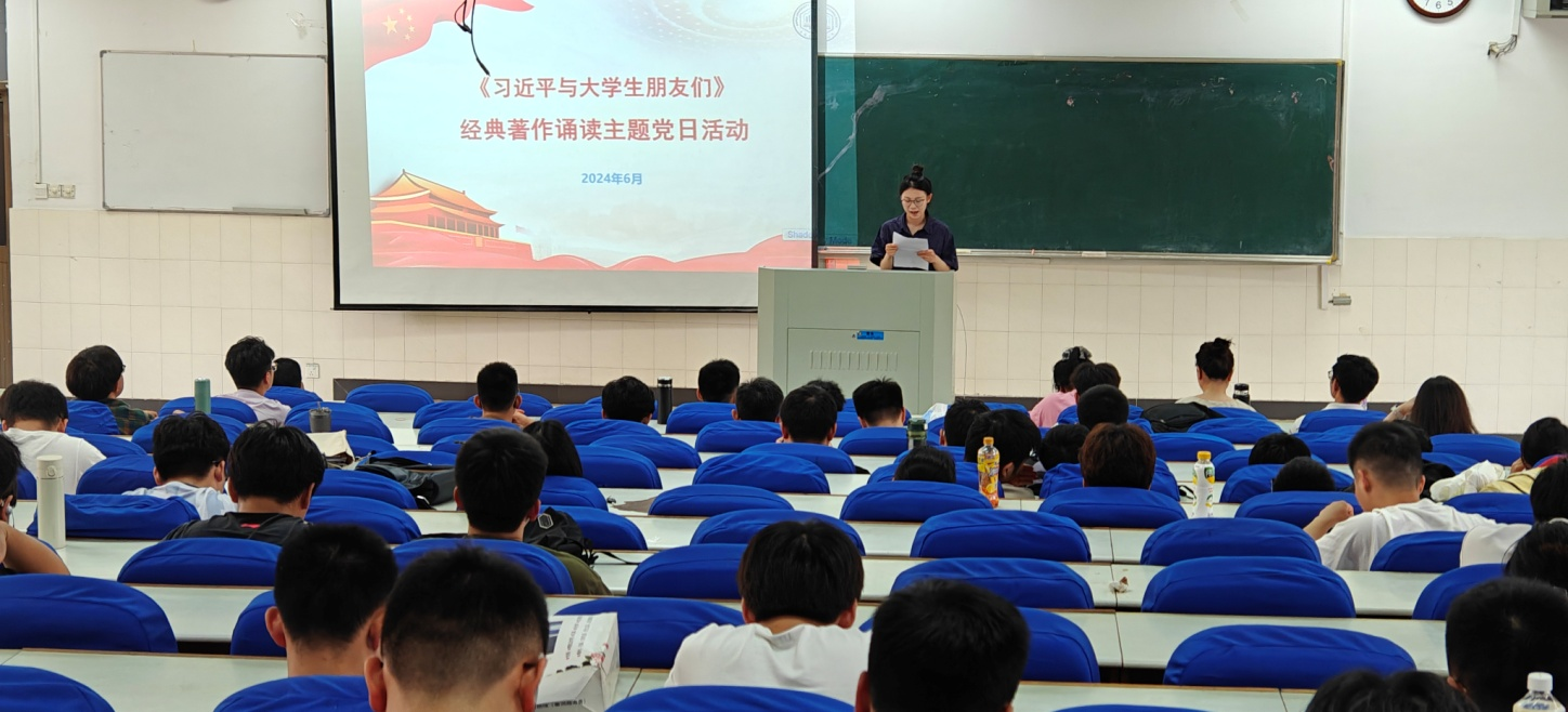 在东区阶教102开展经典著作诵读主题党日活动。学院党委副书记、纪委书记、副院长李克明,各党支部书记及学院全体党员参加,活动由何琳主持。