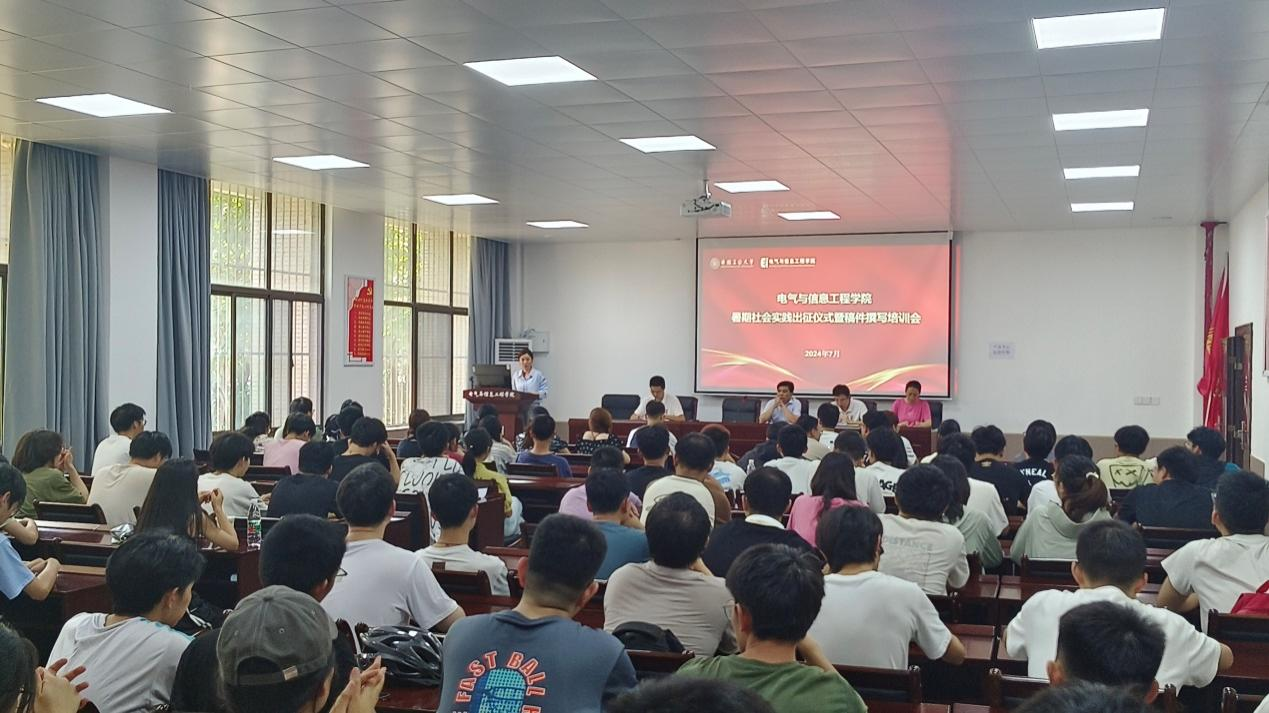 为深入学习贯彻习近平新时代中国特色社会主义思想和党的二十大精神,落实习近平总书记五四青年节对全国广大青年寄语,进一步用好社会大课堂,动员引领青年学生在投身基层建设、服务家乡发展中坚定信念。7月3日下午,在电气楼113会议室举办2024年大学生暑期社会实践出征仪式暨稿件撰写培训会。电气学院党委副书记、纪委书记、副院长李克明、学院副处级辅导员李修正,学院团委副书记杨恒基、汤敏,各社会实践队队长、学生干部参加仪式。仪式由院团委书记甘如美江主持。