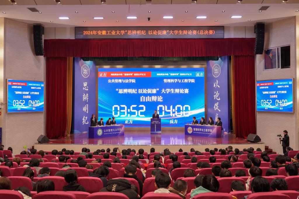 决赛现场,公共管理与法学院代表队与管理科学与工程学院代表队围绕辩题“网络舆论中的‘道德审判’是促进公平正义还是阻碍公平正义”展开了深入的探讨和激烈的交锋。在开篇陈词、驳辩盘问、自由辩论、总结陈词等环节中,正反双方慷慨激昂、引经据典、妙语连珠、针锋相对,辩手们以独到的见解、严谨的逻辑推理、流畅的语言表达、深厚的知识积累、敏捷的临场反应,展现了他们的思辨能力和批判性思维,为观众们呈现了一场精彩绝伦、直击心灵的视听盛宴。