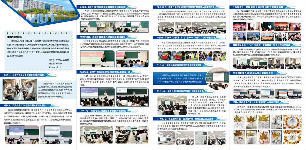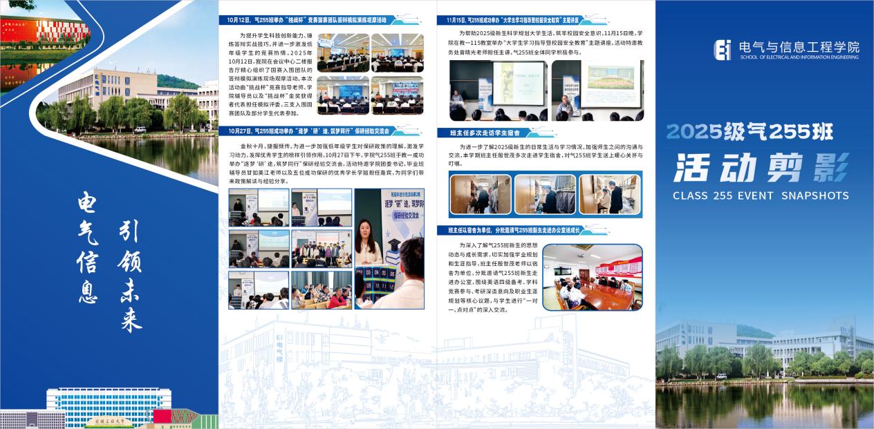 活动剪影的推送,既是班级育人工作的生动缩影,也是家校沟通的温情纽带。家长们的回复满是对学院与班级工作的肯定:“看到孩子在丰富活动中快速成长,我们倍感放心与欣慰”“感谢老师们的悉心培养,愿孩子们在安徽工业大学不负韶华、向阳生长”。未来,气255班将继续深耕育人细节,以更有温度的陪伴、更具活力的活动,护航学子在青春赛道上奋勇争先,书写属于新时代电气人的精彩答卷。