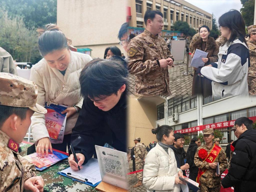 在组织学生参加双选会后,两位辅导员带领2023级学生前往征兵工作站,深入了解应征入伍政策、体检标准及政治考核要求。工作站工作人员围绕大学生入伍优待政策、军营发展前景、退役复学保障等内容进行了细致讲解,帮助学生全面掌握从校园到军营的全流程信息。6名尚未出发的学生新兵亲临征兵展位,结合自身军旅经历开展现场宣讲,用真实感悟分享军营成长收获,细致解读征兵政策、入伍优待及退役发展优势,点燃了在场学子参军报国、戎装筑梦的热血情怀。